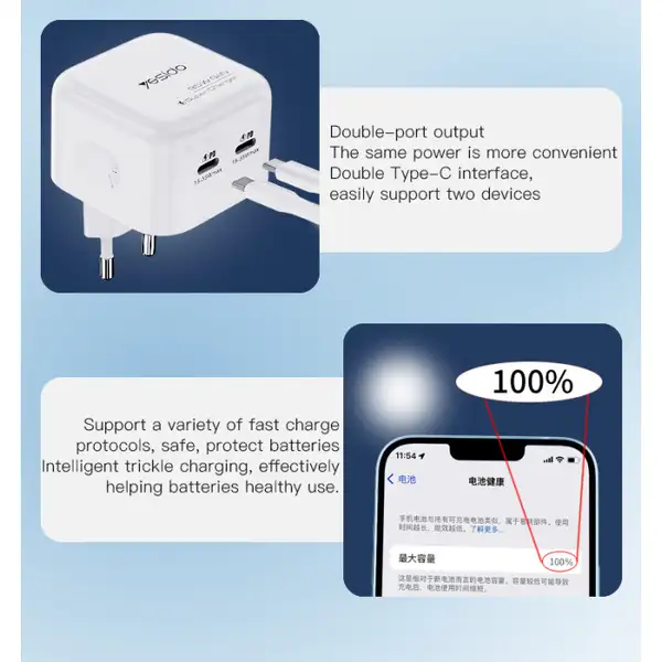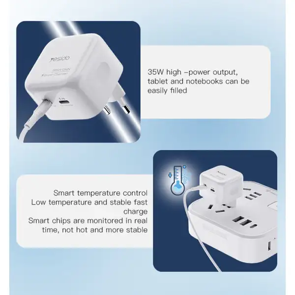 شارژر دیواری Yesido YC38 با توان ۳۵ وات و شارژ سریع، گزینهای مناسب برای شارژ گوشی و تبلت است. این مدل برای افرادی که دنبال شارژر دیواری مطمئن و خوشساخت با سرعت مناسب هستند، انتخاب ایدهآل است.