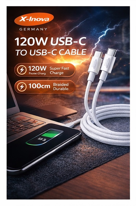 مدلXC02برندX-INOVAنوع کابلType-C به Type-Cشدت جریان6 آمپرحداکثر توان شارژ120 واتقابلیت انتقال اطلاعاتدارد (Sync Data)قابلیت شارژ سریعدارد (Super Fast Charge)طول کابل100 سانتیمترجنس روکشکنفی (Braided) مقاوممقاومت در برابر کشش و خمشدگیبالاسازگار باانواع گوشیها، تبلتها و دستگاههای مجهز به درگاه Type-C