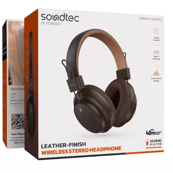 هدفون بیسیم Porodo Soundtec Leather-Finish Wireless Stereo Headphone با طراحی چرمی مدرن و سبک وزن عرضه شده است. این محصول علاوه بر ظاهر شیک، با کیفیت صدای استریو و راحتی استفاده طولانیمدت، انتخابی مناسب برای علاقهمندان به موسیقی و سفر محسوب میشود.